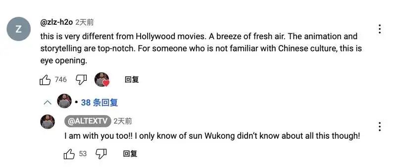 还有美国网友表示,“《哪吒2》与好莱坞电影截然不同,宛如一股清流。其动画制作和叙事手法均属一流。对于不熟悉中国文化的人来说,这部电影令人大开眼界。”
