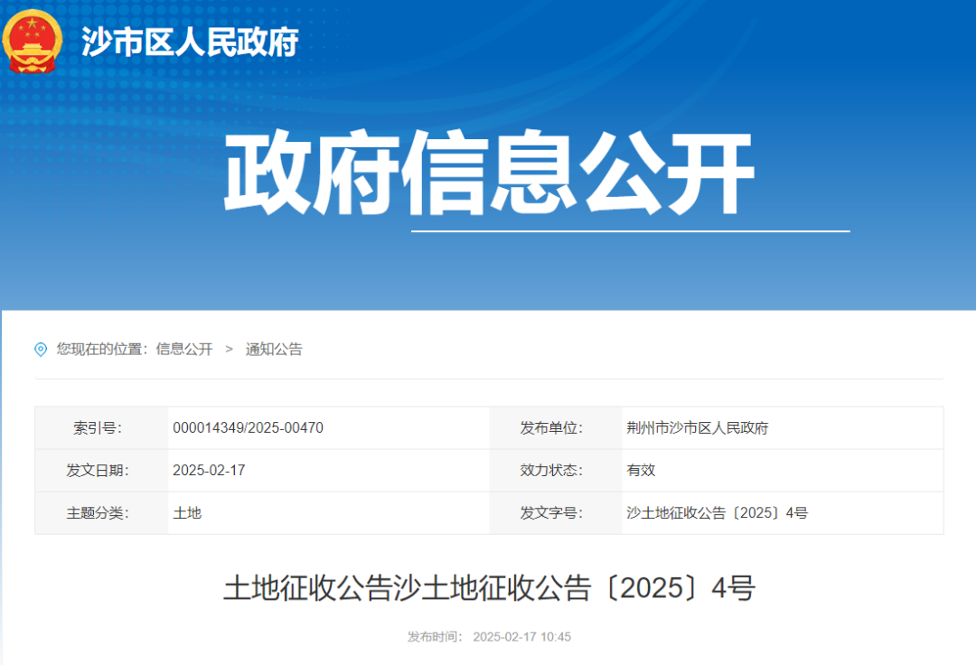 土地征收公告沙土地征收公告〔2025〕4号
