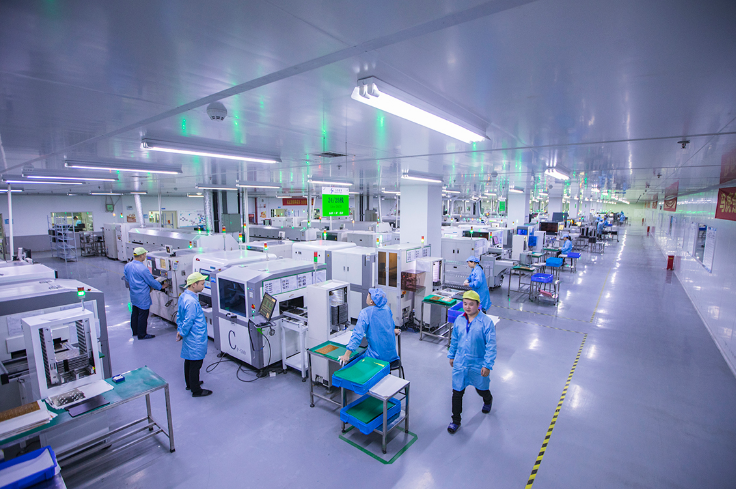 上达电子生产车间,工人正有有序操作设备