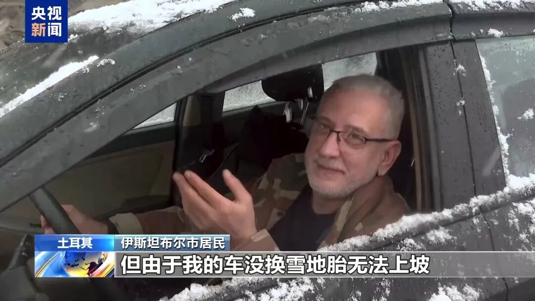 伊斯坦布尔市居民:我家离这里只有大约500米,但由于我的车没换雪地胎无法上坡,我现在只能在这里干等着。