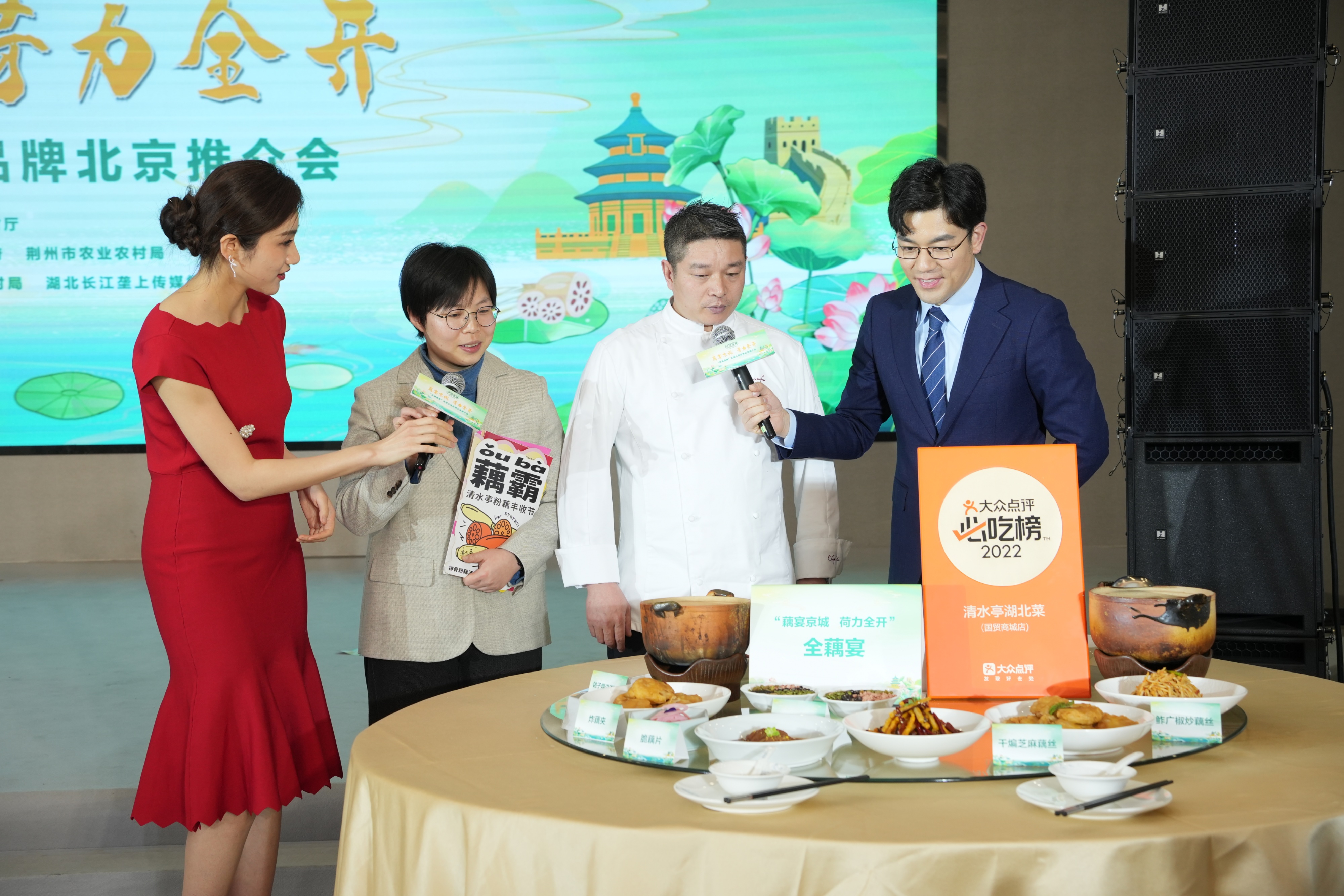 活动现场,北京广播电视台主持人书悦携北京“清水亭·湖北菜”餐厅为在场的北京渠道商和市民,献上了一桌地道的洪湖“全藕宴”。