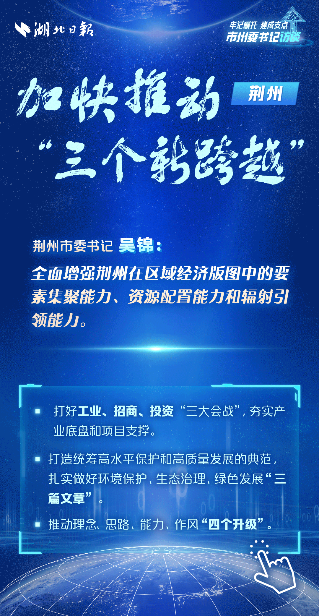湖北市州委书记们最近在忙啥? 2025-02-27 12:12 0 农历新春首个工作日 省委召开全省加快建成 中部地区崛起重要战略支点推进大会 对全省支点建设进行全面部署 潮涌荆楚千帆竞 支点建设正当时 全省上下牢记嘱托 感恩奋进 向着建成支点奔跑 建成支点 十七市州委书记这样“拼” ↓↓↓