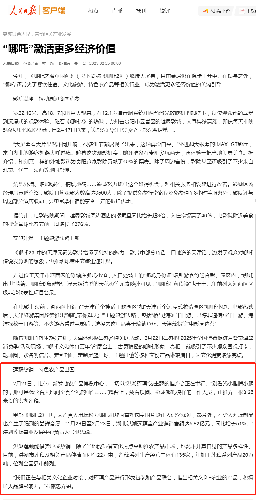 人民日报对洪湖莲藕的报道吧
