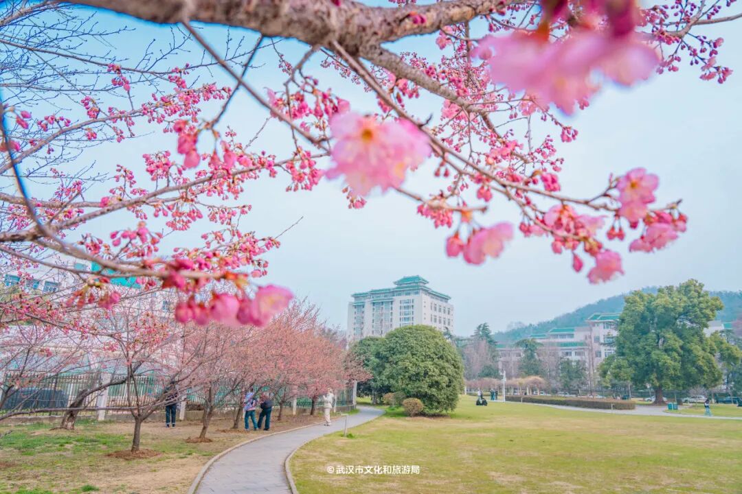 本周末,武汉迎来今年以来最暖天气,最高气温直接27℃。随着气温上升,武汉的第一波樱花已经开了。