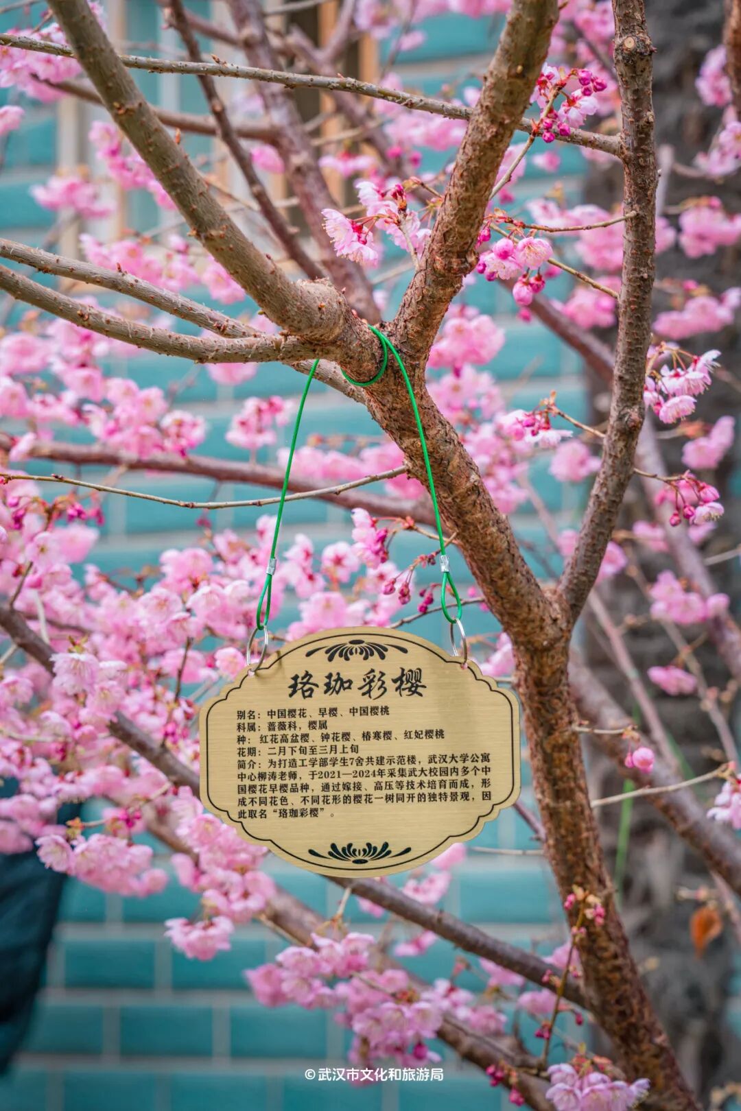 今年工学部宿舍楼老师通过采集武大校内早樱品种,如红花高盆樱、钟花樱等嫁接培育。为学生打造的“珞珈彩樱”树首次绽放,目前绽放的以粉色樱花为主,本周升温后,多种花色、多个品种早樱有望一树同开。