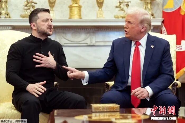 资料图:当地时间2月28日,美国总统特朗普与乌克兰总统泽连斯基在白宫举行会谈。会谈过程中,双方爆发激烈争吵,泽连斯基提前离开白宫。图为特朗普与泽连斯基会谈现场。