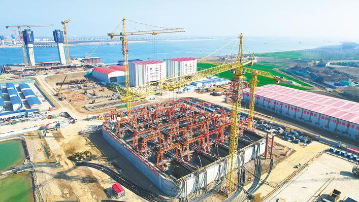 在沉井施工现场,25台橙红色的智能龙门吊手臂挥舞,吊装吸泥机作业。“经过智能化改造,它能自动规划取土时间和深度,取土更精准。”孙岗说。沉井下沉过程“不偏不倚”最重要。建设团队与科研单位自主研发沉井智能建造系统,在沉井钢壳拼装及混凝土接高阶段,预先安装各种应力、姿态等监控元器件,对沉井施工中的水位变化、周边土体沉降、受力状态、空间姿态等关键指标进行实时监测,实现沉井下沉全过程可视、可测、可控。