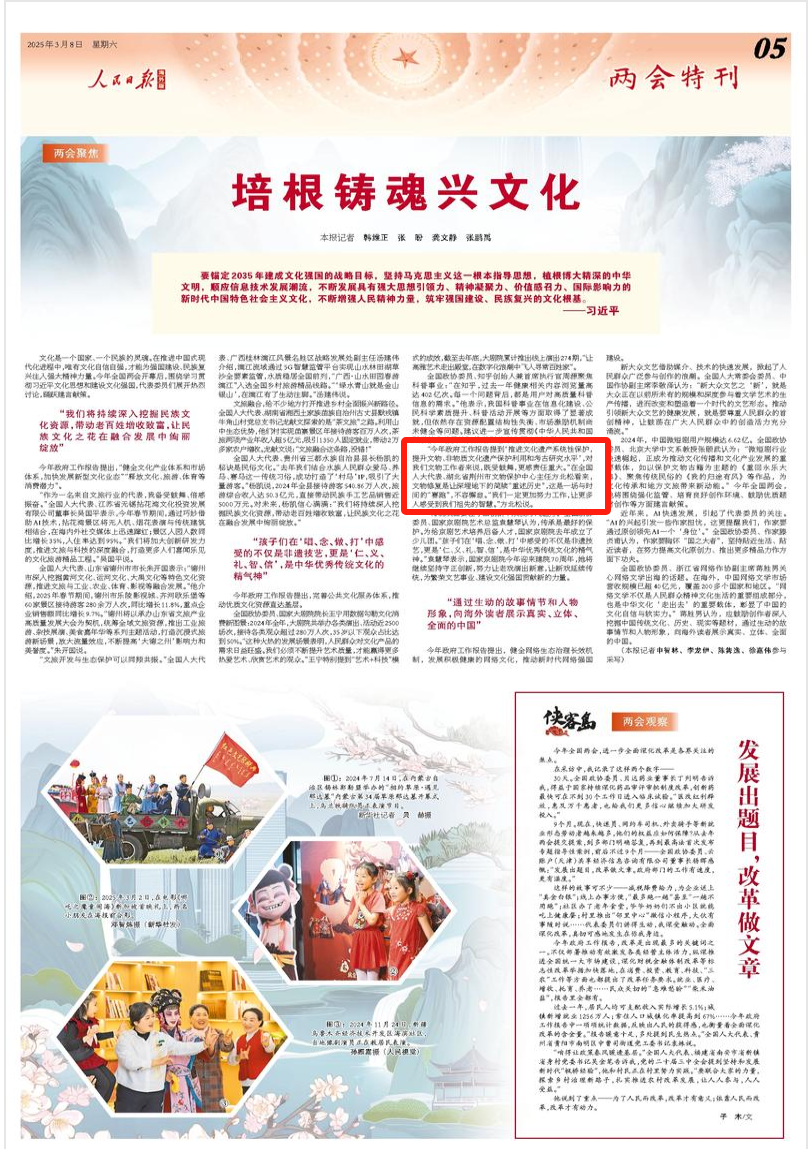 今年政府工作报告提出,完善公共文化服务体系,推动优质文化资源直达基层。