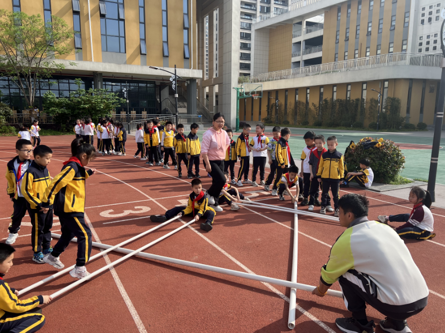 学生对做什么游戏有了自主权。每个班级还成立了“课间游戏策划小组”,由学生们自己组织、策划课间活动。“这不仅锻炼了学生的组织能力和团队协作能力,还让他们在游戏中充分发挥想象力和创造力。如今,课间游戏不再是单调乏味的,而是充满了孩子们的奇思妙想和无限乐趣。”黄金堂校区执行校长胡载鑫这样说。