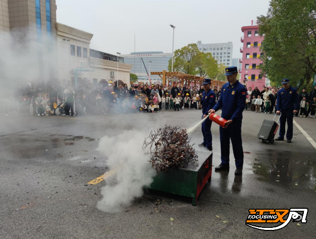 来到营区操场,消防员们为小朋友们演示了灭火器的使用方法。几个胆大的小朋友也在消防员的指导下,勇敢地拿起灭火器进行灭火操作,成功完成“灭火任务”后,他们兴奋不已。