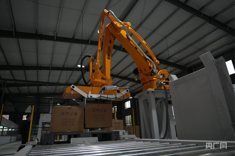 AI机器手臂自动码垛(央广网记者左洋 摄)