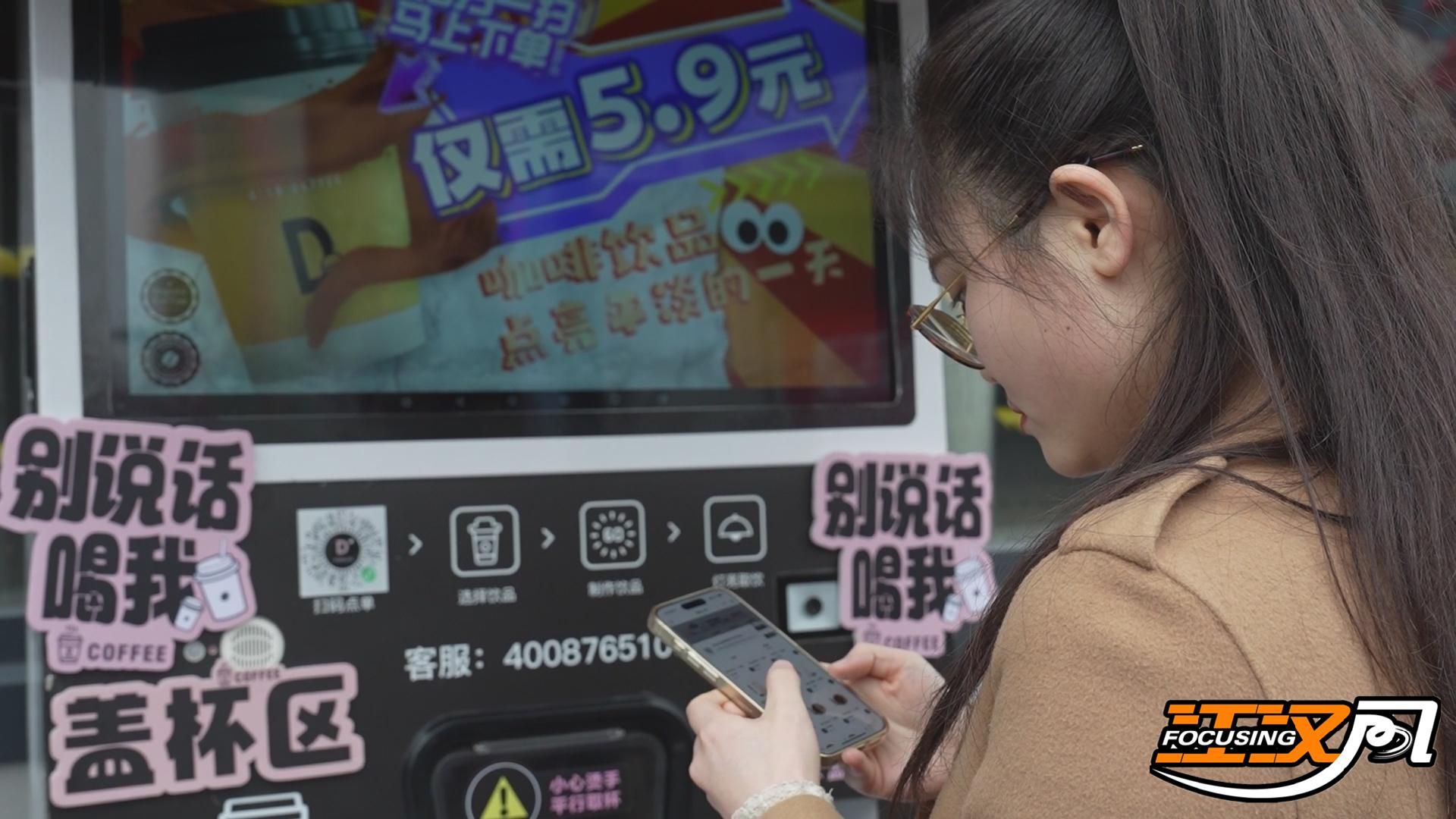 漫步沙市码头,逛累了,去路边的无人智能饮品机点杯咖啡。从扫码点单到喝上咖啡,只需15秒。