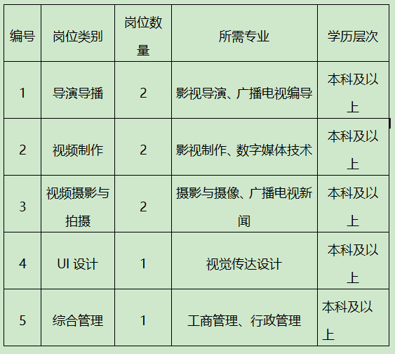 荆州市广电影视文化有限公司(以下简称“影视公司”)2025年致力于建设微短剧基地,结合影视公司实际和岗位需要,面向社会公开招聘综合管理、导演导播、视频制作与拍摄、UI设计等相关专业人才,根据《荆州市市属企业员工公开招聘暂行办法》(荆国资发[2024]14号)要求,现公告如下。