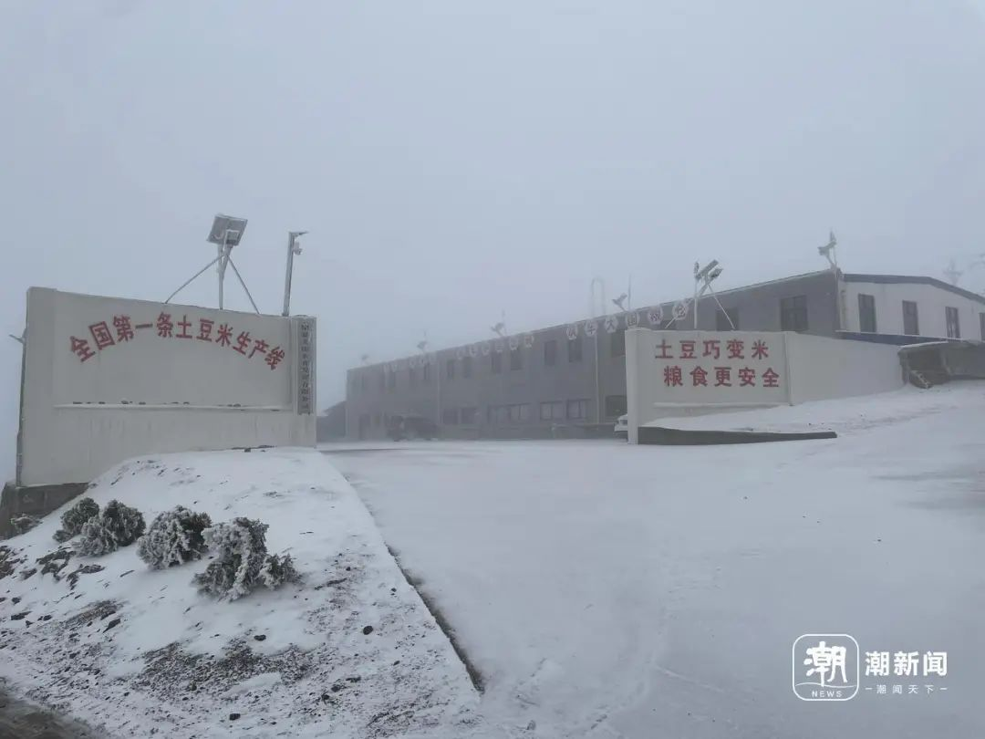 全国首条“土豆米”生产线位于昭通市巧家县马树镇,海拔超过2800米的大山,在3月中旬迎来了几场降雪。竖着“全力书写高原特色农业发展新篇章”牌子的土地盖上了一层积雪,积雪下面就长着“土豆米”的原料土豆。