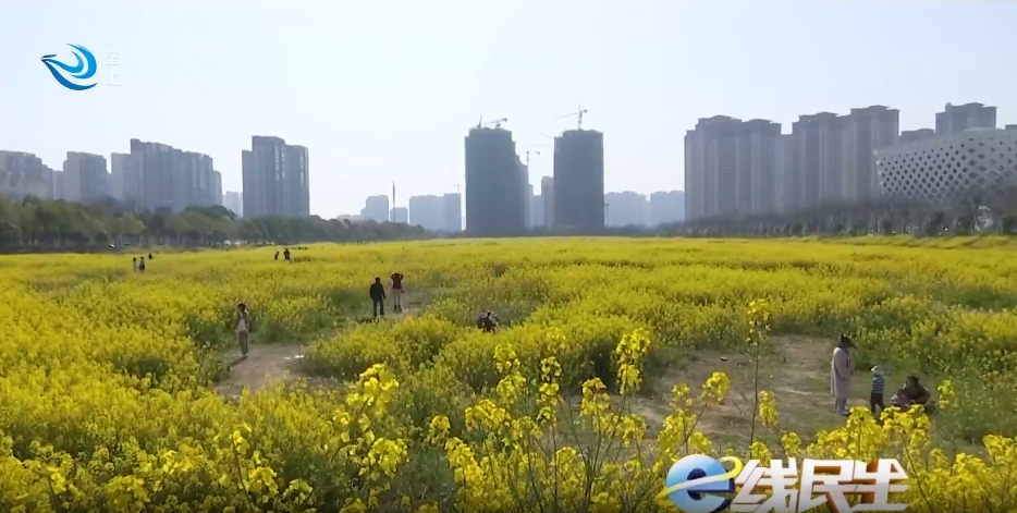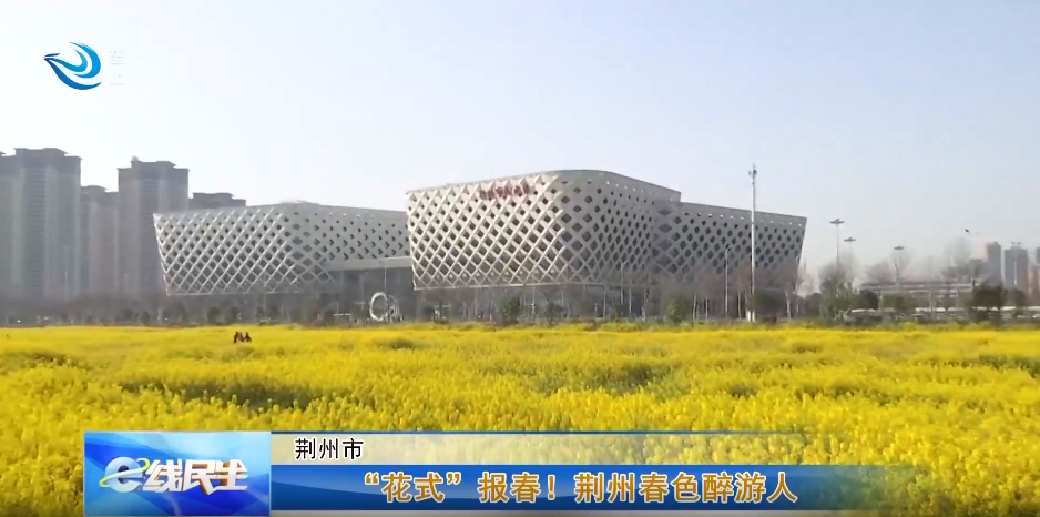 荆州市民之家北面的油菜花竞相开放,城区中一片金色花海格外显眼,许多游客来到花海中感受美好时光。
