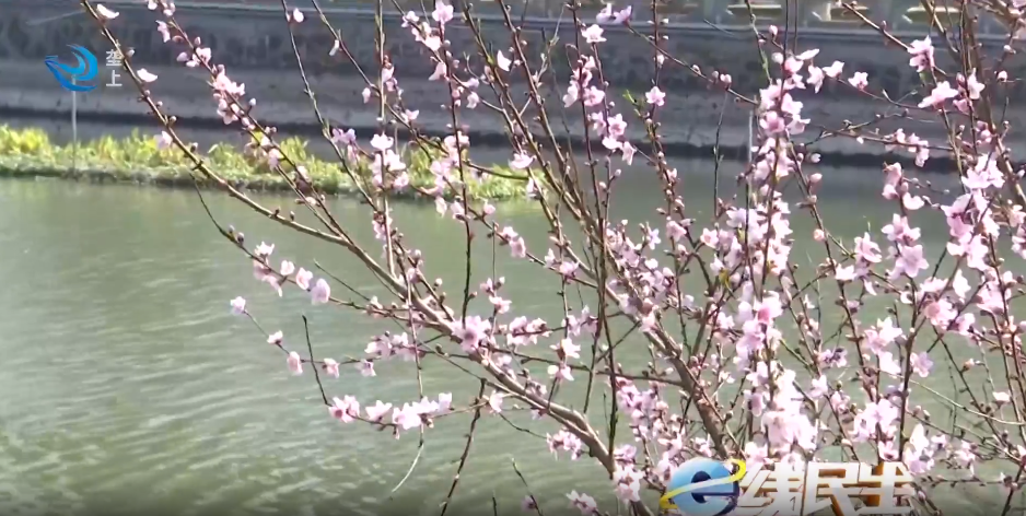 在东门外,荆州古城墙外环道上,率先吐露芳华的桃花主要集中在宾阳楼附近,春风轻拂,薄如蝉翼的花瓣摇曳生姿,蜜蜂在花蕊间翻飞。