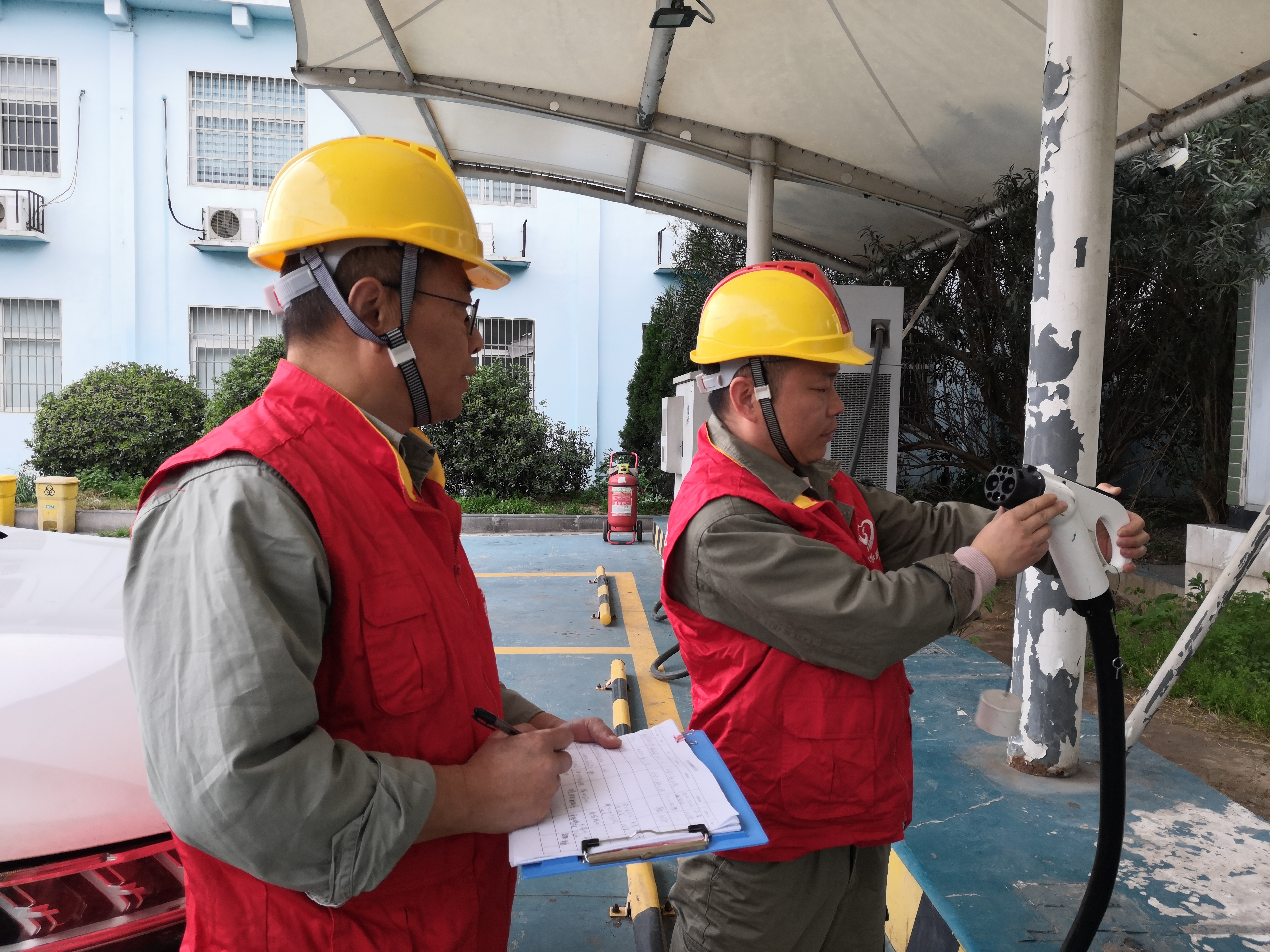 江汉风报道:3月28日上午10时25分,在二广高速荆州长江大桥桥南服务区充电桩前,国网电动汽车服务湖北有限公司荆州分公司党员突击队员牟康、游洪仔细查看充电桩外部状况,检查有无破损,听内部有无异响……这是该公司为保清明节市民充电开展特巡特检的一个镜头。