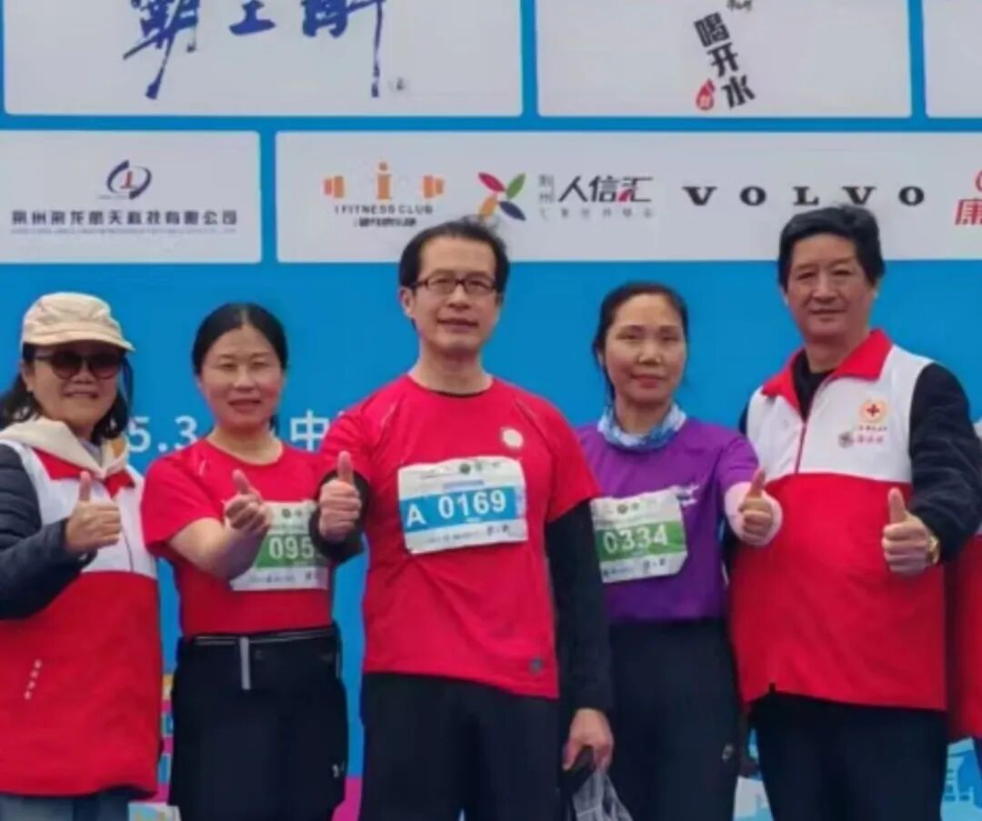 毛国庆(图居中),荆州市中心血站党总支书记、站长,也是荆州红细胞跑团的发起人。他不仅是一位资深的无偿献血者,更是一位马拉松爱好者,多次获得全马赛程的好成绩。
