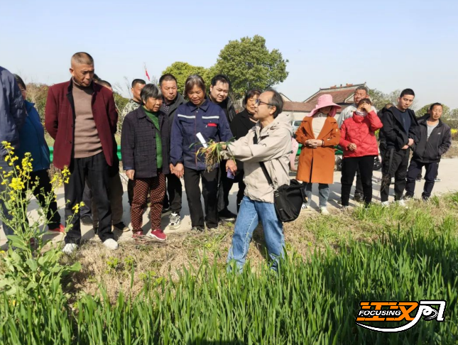 江汉风报道:近日,气温回升,春光正好。在沙市区岑河镇西湖村十组的小麦田边,一场别开生面的小麦“一喷三防”现场培训会火热开展,现场聚集了众多当地农户,大家满怀期待,渴望汲取小麦种植的关键知识,为夏粮丰收增添保障。