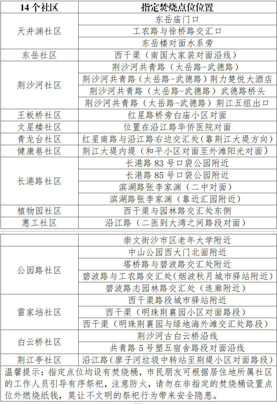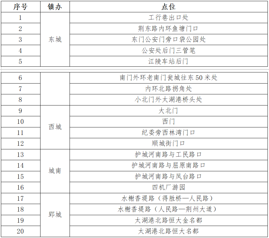 荆州区清明焚烧桶设置点位信息表
