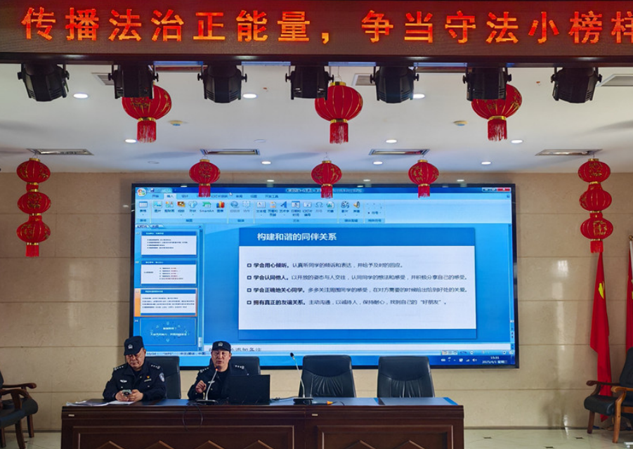 讲座中,祖警官细致讲解了学生欺凌的防治,包括认识学生欺凌的本质、识别欺凌行为、应对欺凌策略、网络欺凌的警觉性以及塑造更好的自我等安全主题,引领学生树立正确的法治观念,培养学习法律、遵守法律、理解法律的优良习惯,强化安全防护意识,提升自我保护能力。