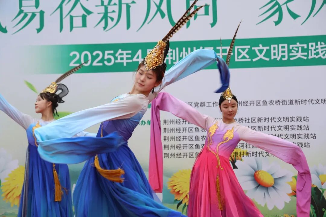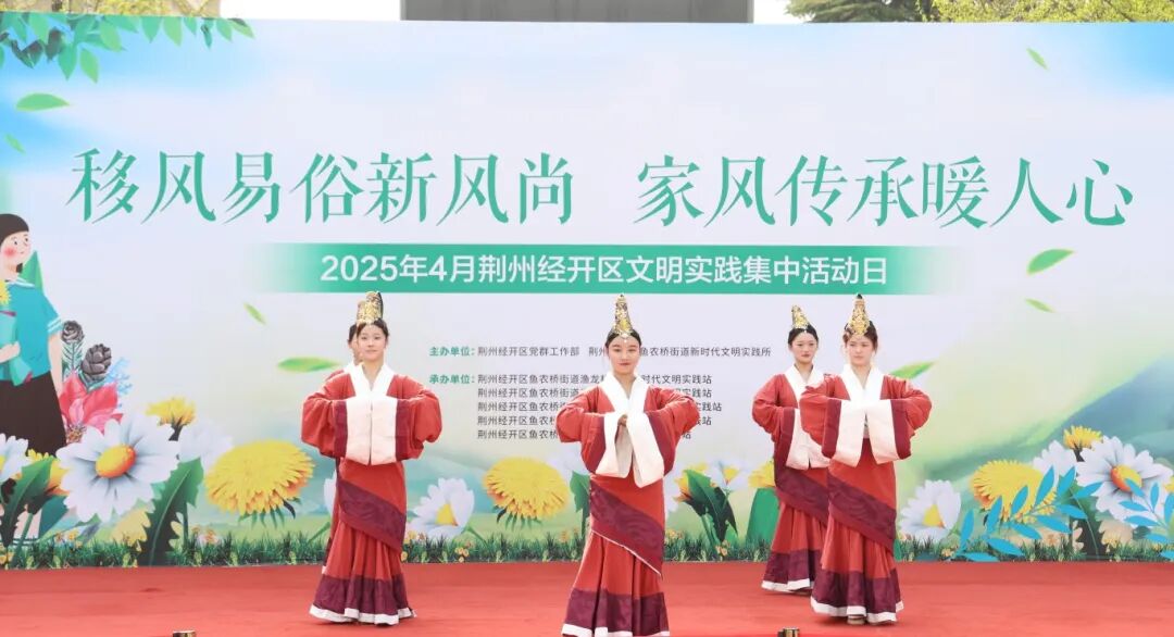 舞台上,汉唐舞《礼仪之邦》的演员们广袖翩跹,一展千年礼仪之美;荆州经开区第二中学的师生齐诵《四月的纪念——致清明》,将红色记忆娓娓道来;鱼农桥街道中心幼儿园的孩子们用稚嫩的手势舞,演绎清明节的别样韵味;湖北大鼓非遗传承人用地道的方言唱响《荆州新风尚》,诙谐小品《清明同学会》让文明追思理念深入人心;压轴节目《楚韵》用灵动舞姿,带领观众感受荆楚文化的独特魅力。