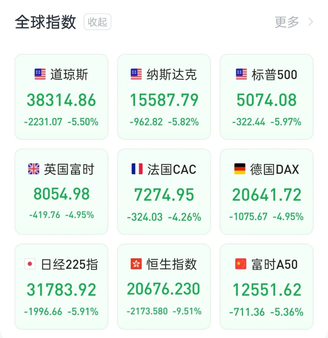 此外,马来西亚综合股指跌超4%,以色列特拉维夫TA35指数跌超3%,新加坡海峡时报指数一度下跌8.5%。台股加权指数暴跌超9%触发熔断,台积电和富士康股价均接近下跌10%。
