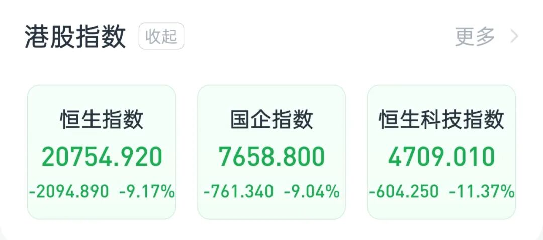 港股方面,三大指数集体低开,恒生指数跌9.28%,恒生国企指数跌9.07%,恒生科技指数跌11.15%。联想集团、舜宇光学科技、阿里巴巴、腾讯等多股大跌超10%。