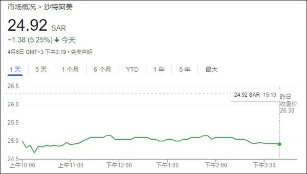当地时间4月6日,包括沙特阿拉伯在内的中东国家主要股指出现2020年以来最大跌幅。沙特主板市场的股票一度下跌6.1%,卡塔尔和科威特的股指下跌超过5.5%。据报道,全球最大的石油出口商沙特阿美是该地区最大的输家之一。该公司市值一度蒸发逾900亿美元。