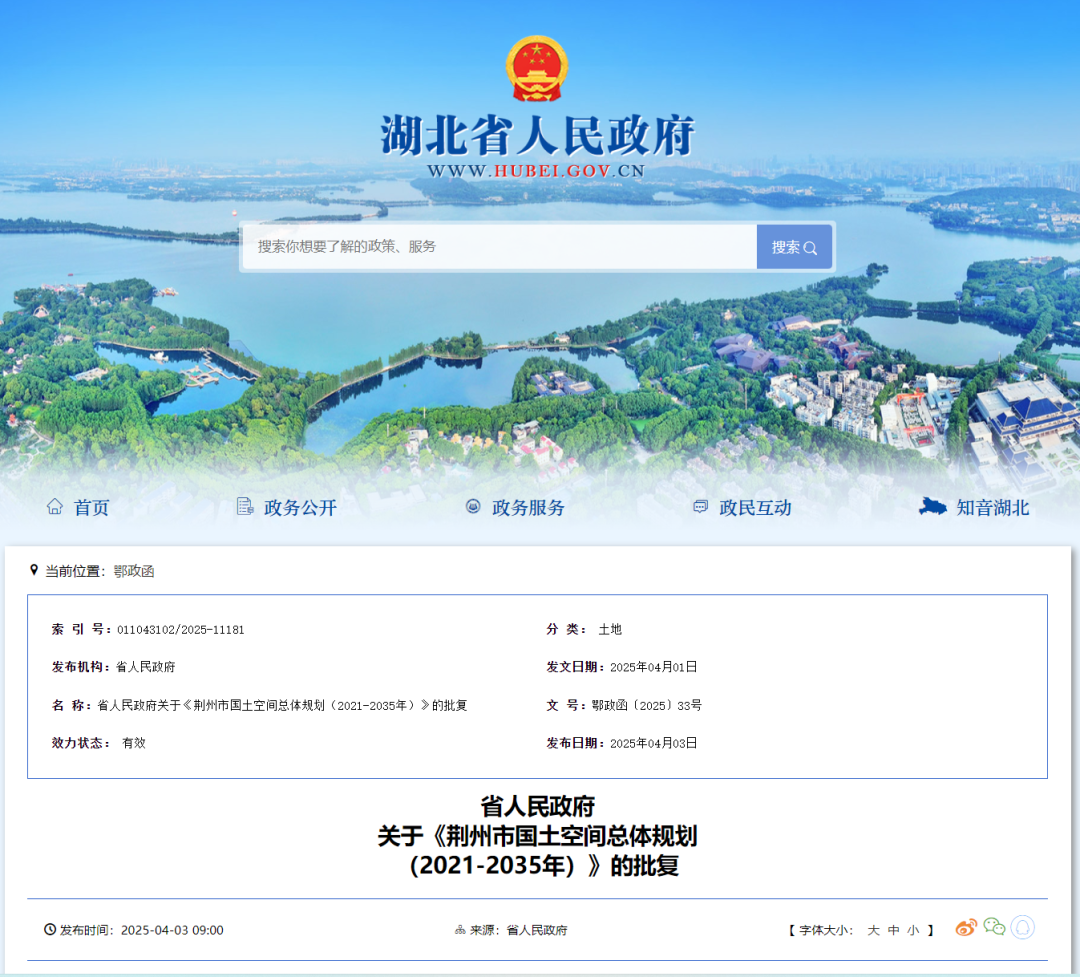 你们关于报请批准《荆州市国土空间总体规划(2021-2035年)》的请示收悉。现批复如下: