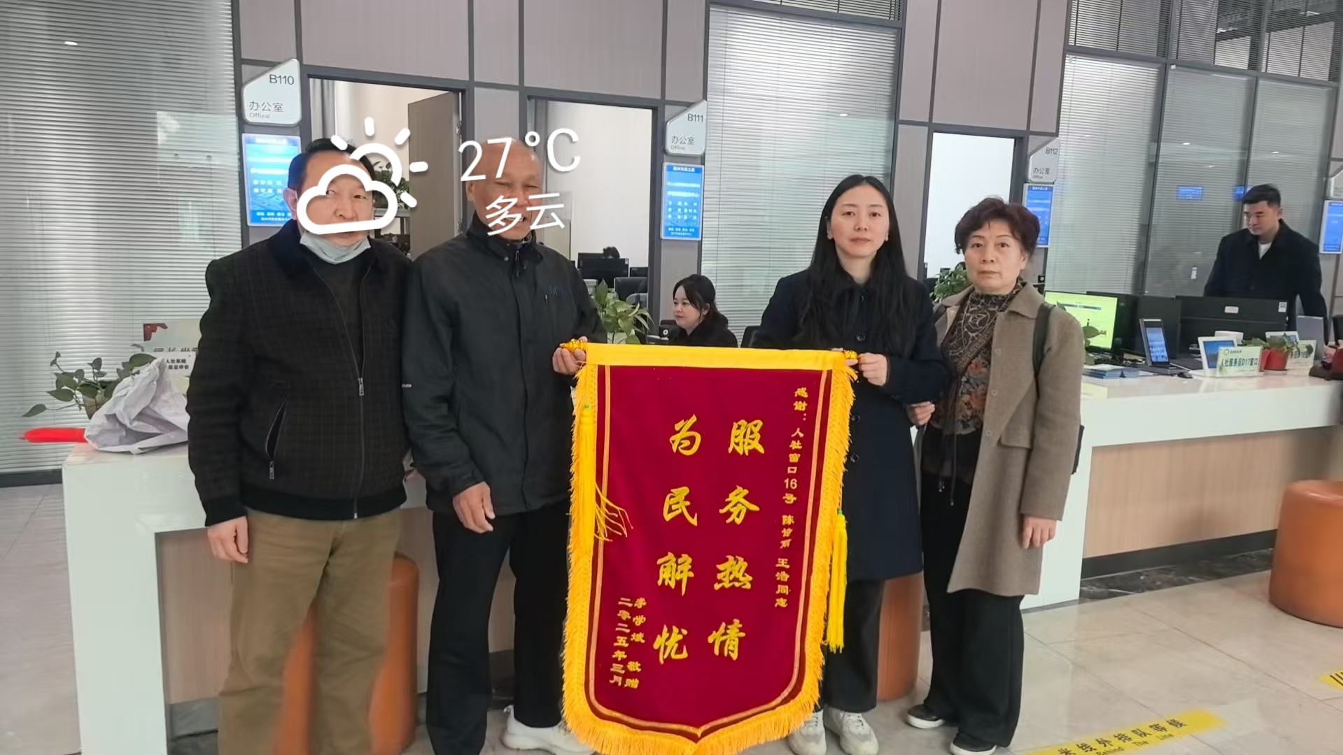 江汉风报道:近日,一位七旬老人匆匆来到荆州市市民之家人社窗口,将印有“服务热情 为民解忧”的大红锦旗,送给人社16号受理窗口工作人员陈诗丽、王浩,用最真挚的方式对工作人员贴心服务表示感谢。