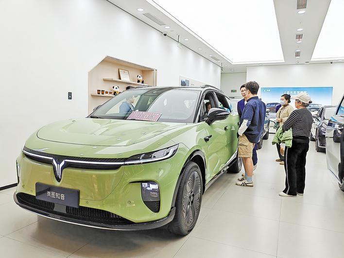 政策持续加力,车企加速焕新。当天,在武昌万象城一楼,岚图、华为、理想、长城等新能源汽车品牌店一字排开,一些门店打出“高阶智驾,双五星安全,超级沙发”等宣传语,一些门店贴出“尾款立减1.2万元,3年0息,至高节省3万元”的标语,吸引了众多消费者进店看车。