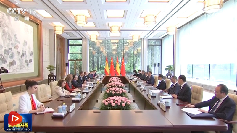 桑切斯表示,西班牙和中国建立全面战略伙伴关系20年来,始终相互尊重、友好合作,两国关系不断深化发展。在习近平主席领导下,中国取得卓越发展成就,为世界繁荣稳定作出重大贡献。西班牙重视对华关系,坚定不移奉行一个中国政策,愿同中方保持高层交往,深化贸易、投资、科技创新、绿色能源等领域互利合作,加强教育、文化、旅游领域交流,推动两国关系迈上新台阶。中国是欧盟重要合作伙伴,西班牙始终支持欧中关系稳定发展。欧方坚持开放自由贸易,致力于维护多边主义,反对单边加征关税。贸易战不会有赢家。面对复杂严峻的国际形势,西班牙和欧盟愿与中方加强沟通协作,维护国际贸易秩序,携手应对气候变化、贫困等挑战,维护国际社会共同利益。