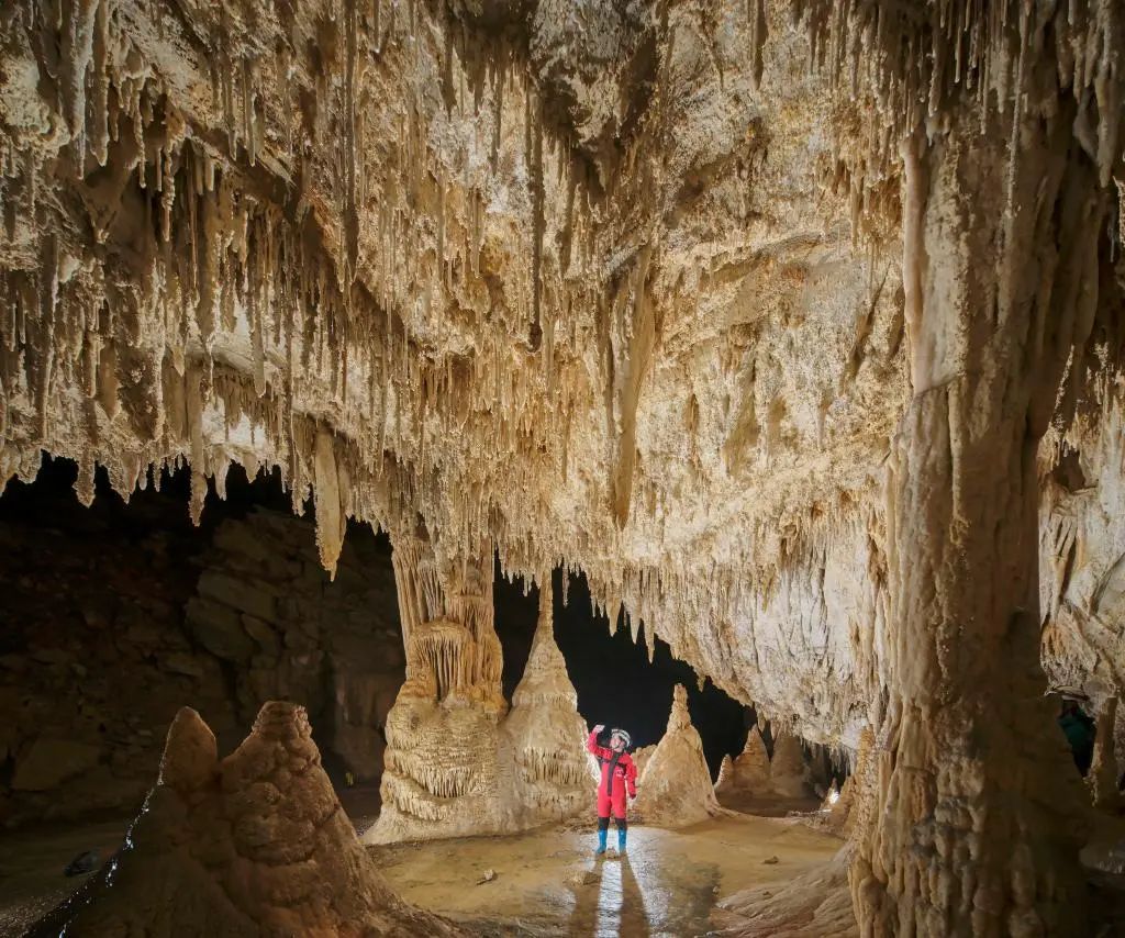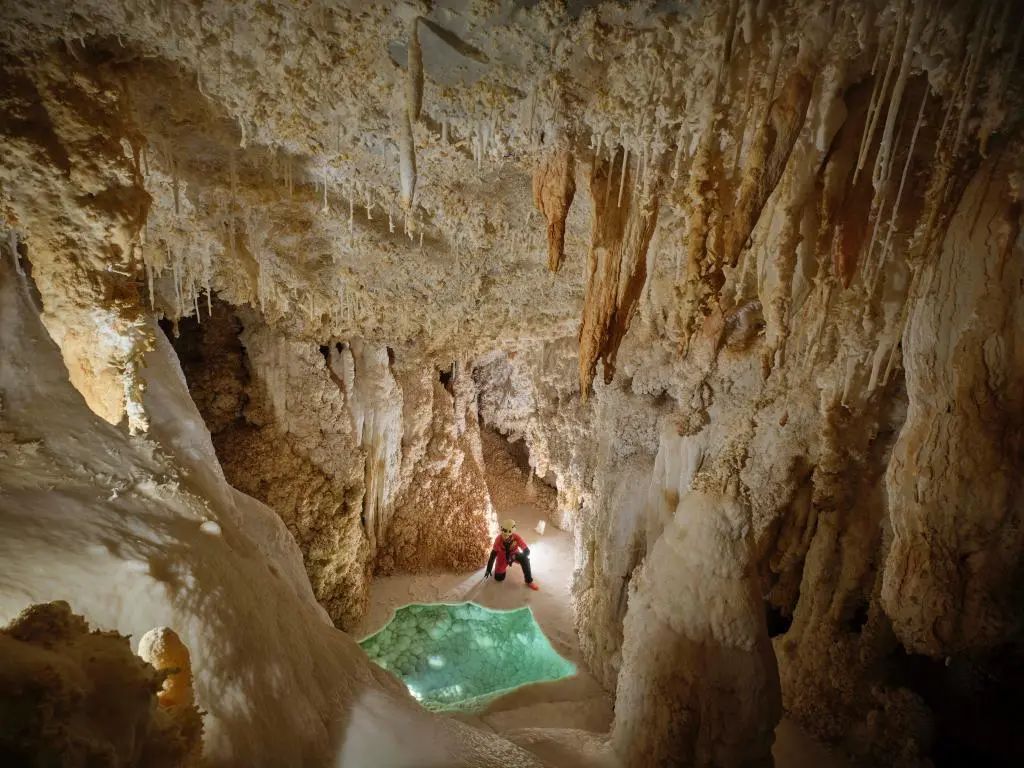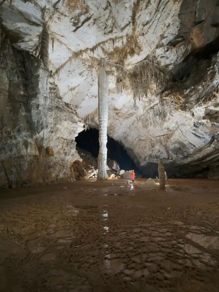 “此次科研活动中发现洞里有一个数万平方米的洞厅,上千根纯白石钟乳如冰晶森林般亭亭玉立于其中,雪白质感源于水中碳酸钙纯度极高且无杂质干扰,洞里的沉积物、规模、品质、种类,完全改变了我们的认知。”