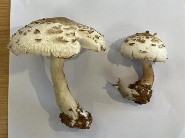 02灰花纹鹅膏菌与裂皮鹅膏菌剧毒!对肝、肾等脏器毒性极大,很容易导致死亡,是毒蘑菇中毒死亡人数较多的野生毒蘑菇之一。