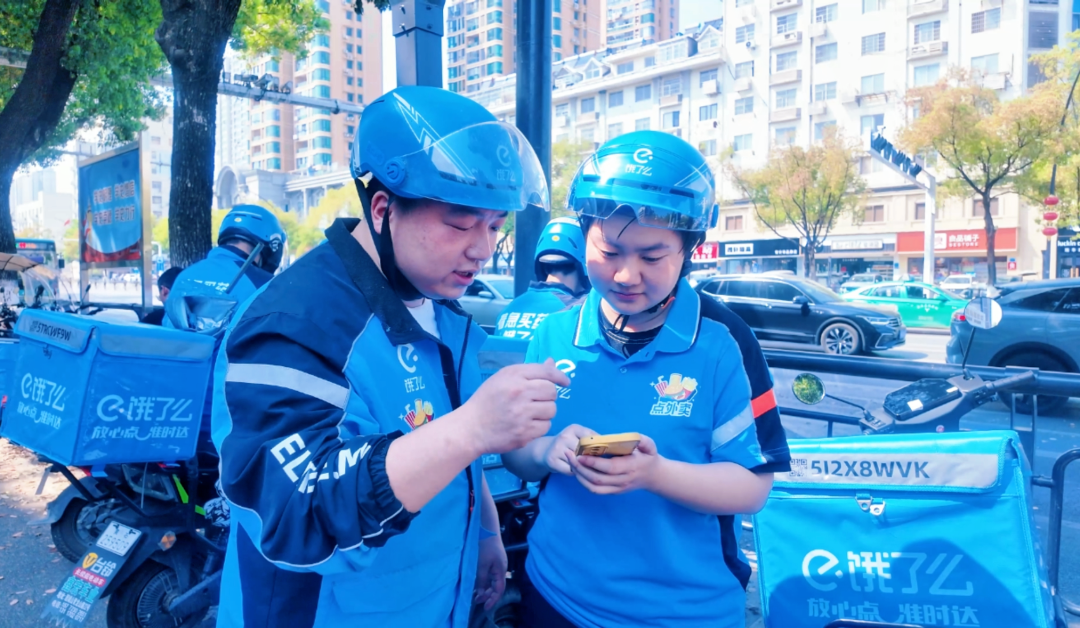 黄石“95后”女干部汪梓溦(右)体验送外卖工作。
