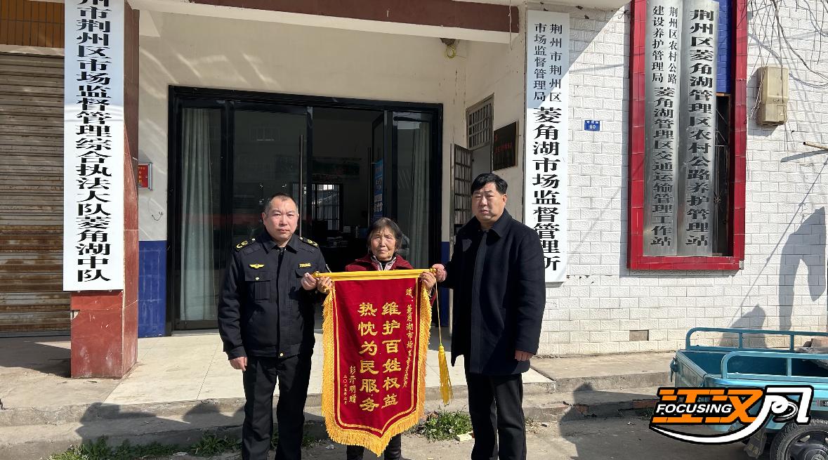 江汉风报道:近日,市民彭女士将一面印有“一心为民解难题,维权尽责暖人心”的锦旗送到荆州区市场监管局菱湖市场监管所工作人员手中,为一起历时三年的消费纠纷画上温暖句号。