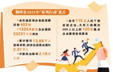 “春风”带来的政策硕果,正一项项惠及荆州,让企业、劳动者、创业者感受到春的温暖。截至3月底,荆州市“春风行动”累计吸引13.88万人进场求职,发放宣传资料8.77万份,开展职业指导2.18万人次,初步达成就业意向2.61万人。