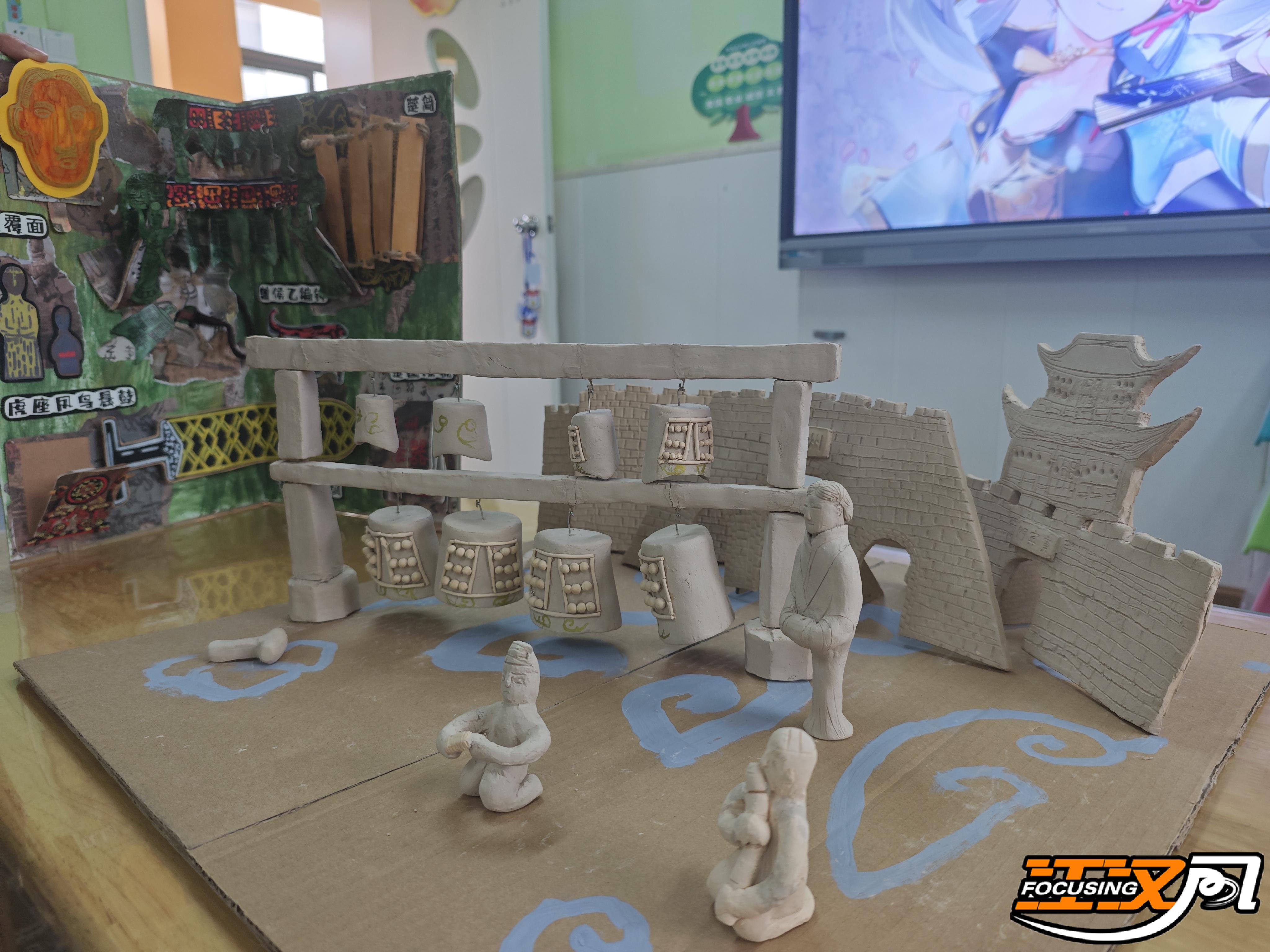 在荆州市沙市教育幼儿园里,孩子们正用稚嫩的双手“对话”历史,有的在跟着图片画编钟,勾勒出云雷纹的波浪线条,有的用黏土捏出憨态可掬的“楚人”,有的用纸板自制“迷你编钟”。