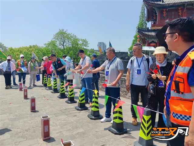 上午11点,陆续有赛事车辆穿过荆州城门驶向荆州博物馆,参赛者在荆州博物馆、明月公园停车场打卡后,乘船来到宾阳楼,在宾阳楼上打卡并参与趣味投壶运动。当汽车、房车遇见荆州古城,串联的不仅是美景,更是一场文化之旅。