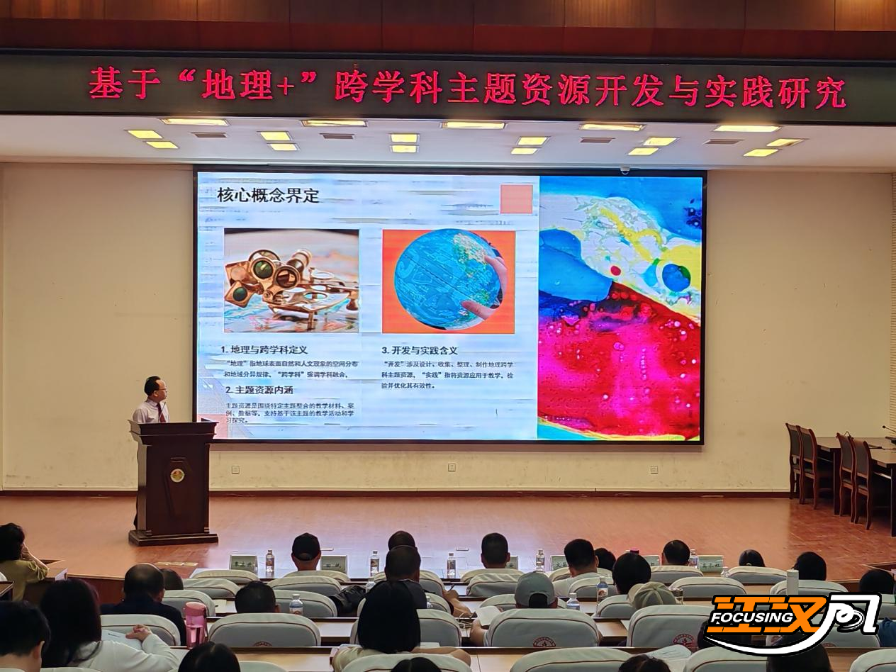 会议围绕课题核心目标展开深度研讨。课题负责人、沙市教科院地理教研员覃东升全面系统地阐述了“地理+”跨学科主题学习的框架设计,从研究背景、目标确定,到研究方法与内容的选定,进行了详细汇报。强调以真实情境为依托,整合历史、文学、信息技术等多学科资源,构建“主题导引—合作探究—成果展评”的实践路径。
