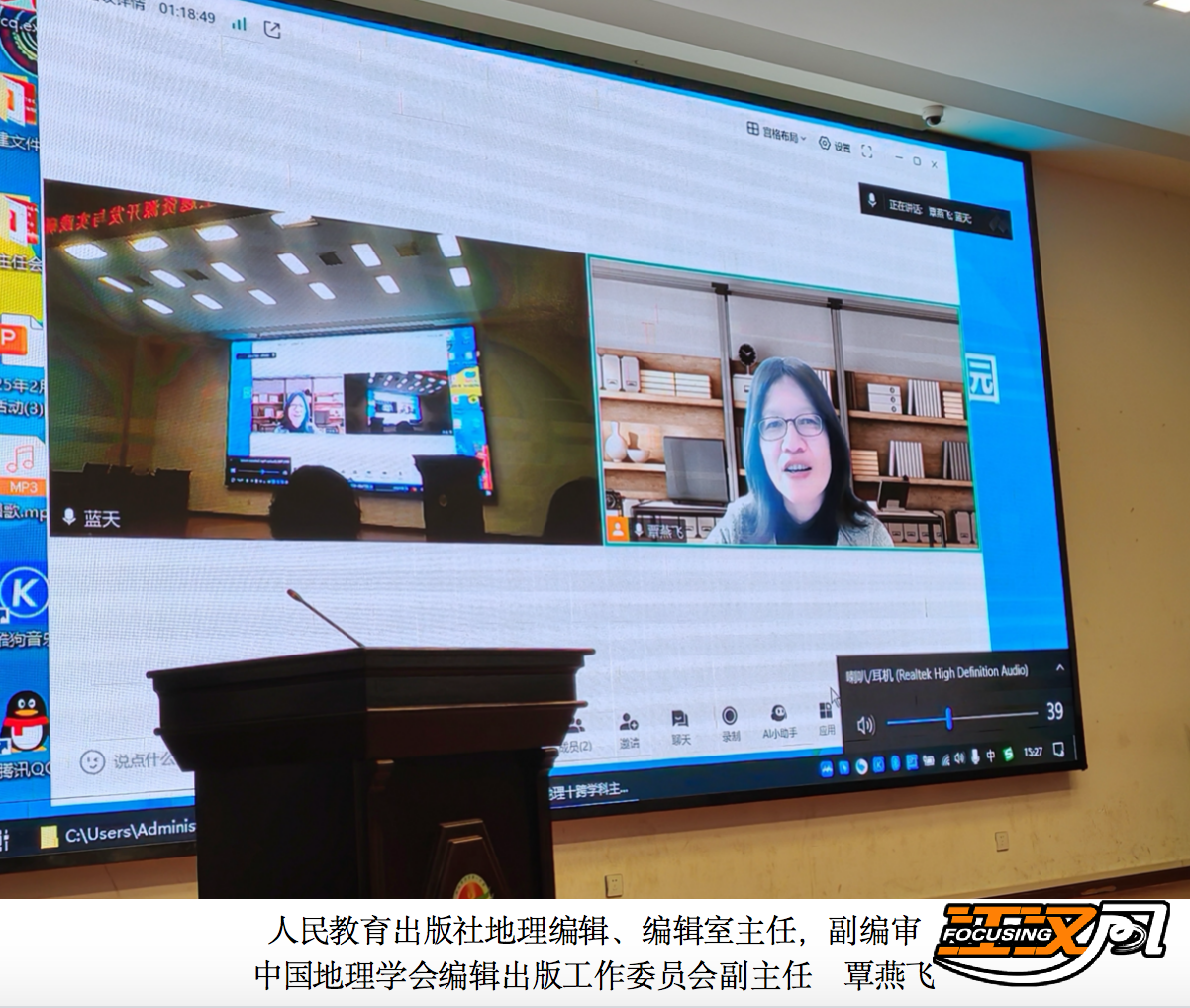荆州市地理教研员李兵安对报告进行专业点评,充分肯定课题可行性的同时,也给出了建设性建议。通过视频连线人民教育出版社地理编辑、编辑室主任、副编审,中国地理学会编辑工作出版委员会副主任覃燕飞,听取了她的宝贵意见。课题研究协作单位、沙市中学地理学科教研室主任高长虹老师作为课题研究单位代表作表态发言。