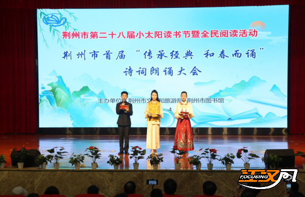 江汉风报道:4月20日,在“世界读书日”来临之际,荆州市首届“传承经典 和春而诵”诗词朗诵大会在荆州市图书馆举行。本次活动作为荆州市第二十八届小太阳读书节暨全民阅读系列活动的重要组成部分,吸引了全市诗词爱好者、中小学生及社会各界人士的广泛参与,共同以诵读经典诗词的形式,迎接第30个“世界读书日”的到来。