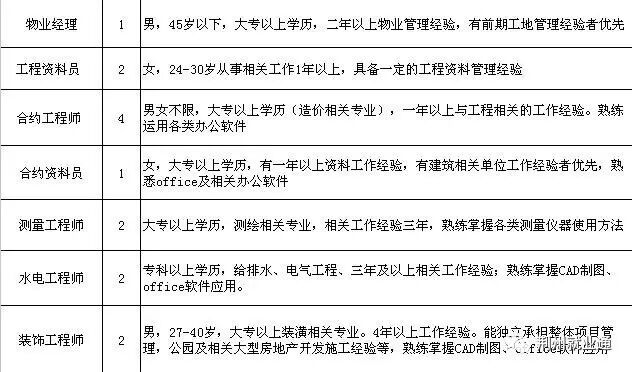 【职位描述】35周岁以下,男女不限,大专及以上学历,物业管理工作经验。