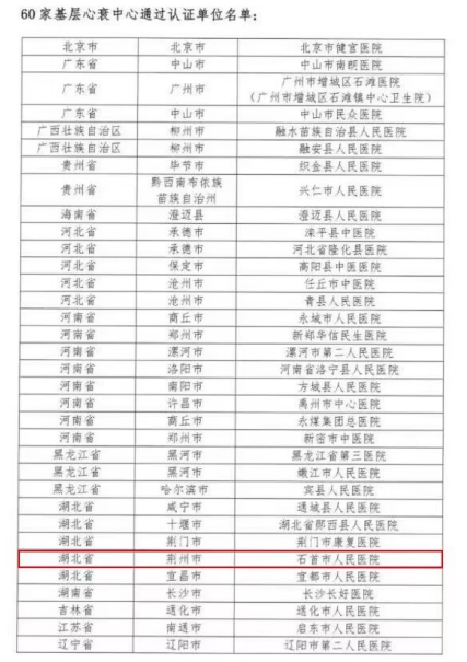 江汉风报道:近日,国家心衰中心总部发布公告,石首市人民医院成功通过第十三批次基层版心衰中心认证,这标志着该院在心衰诊疗领域获得国家级认可,也将为区域内心衰患者带来更优质的医疗服务。