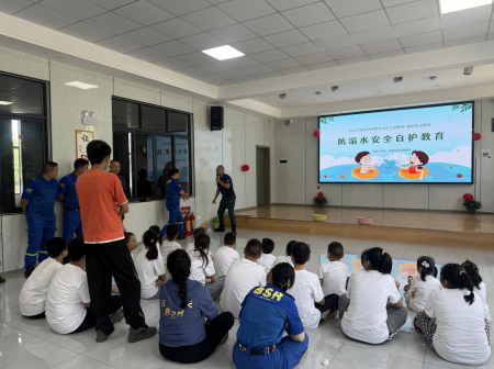 江汉风报道:为切实增强青少年儿童暑期安全意识,预防溺水事故发生,7月16日,石首市妇联联合石首市蓝天救援队走进中宇恒通暑期爱心托管班,开展防溺水安全自护教育活动,为孩子们上好“暑期安全第一课”。