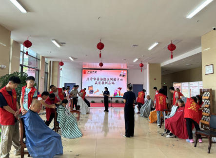 活动现场暖意融融:学员们围在老人身边,轻声细语询问老人喜好,梳子与剪刀在手中灵活配合,从利落的短发到整齐的鬓角,精心修剪后的老人们容光焕发,笑谈家常,活动室里洋溢着欢乐。