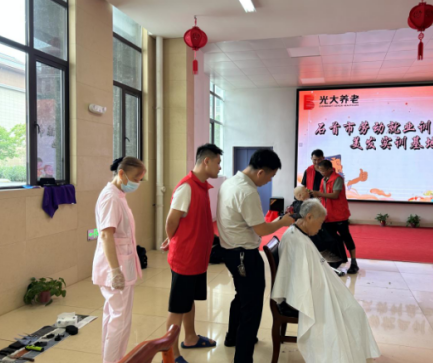 石首市劳动就业训练中心美发培训班专业教师王烈说:“养老院的老人们行动不是特别方便,剪头发对他们是非常麻烦的事情,我们美发班会在每个月定时定点的到养老服务中心为老人们进行义剪。”