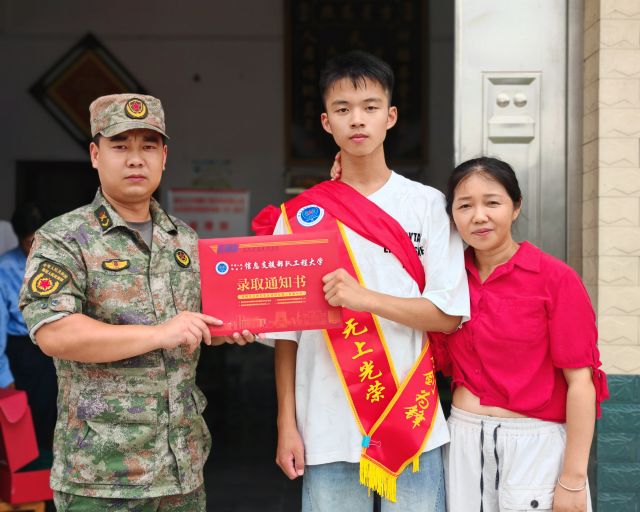 乡村干部与学生家长进行深入沟通和交流,详细了解了他们的家庭情况、成长经历、考取专业和未来规划等,并感谢他们对国防事业的支持。乡人武部副部长戴凯表示,希望龚旭坚定信心、安心学习,以坚韧不拔的毅力和孜孜以求的求学态度学好专业知识,为国防和军队建设贡献力量!