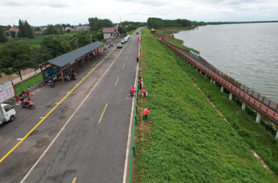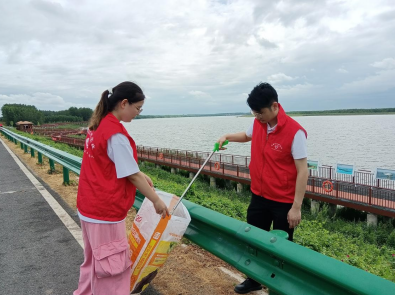 江汉风报道:7月22日上午8时,在石首天鹅洲生态旅游开发区江豚湾,二十余名党员志愿者沿着观豚栈道的大堤护栏,清理村民和游客留下的垃圾,用双手守护这片长江湿地的生态底色。